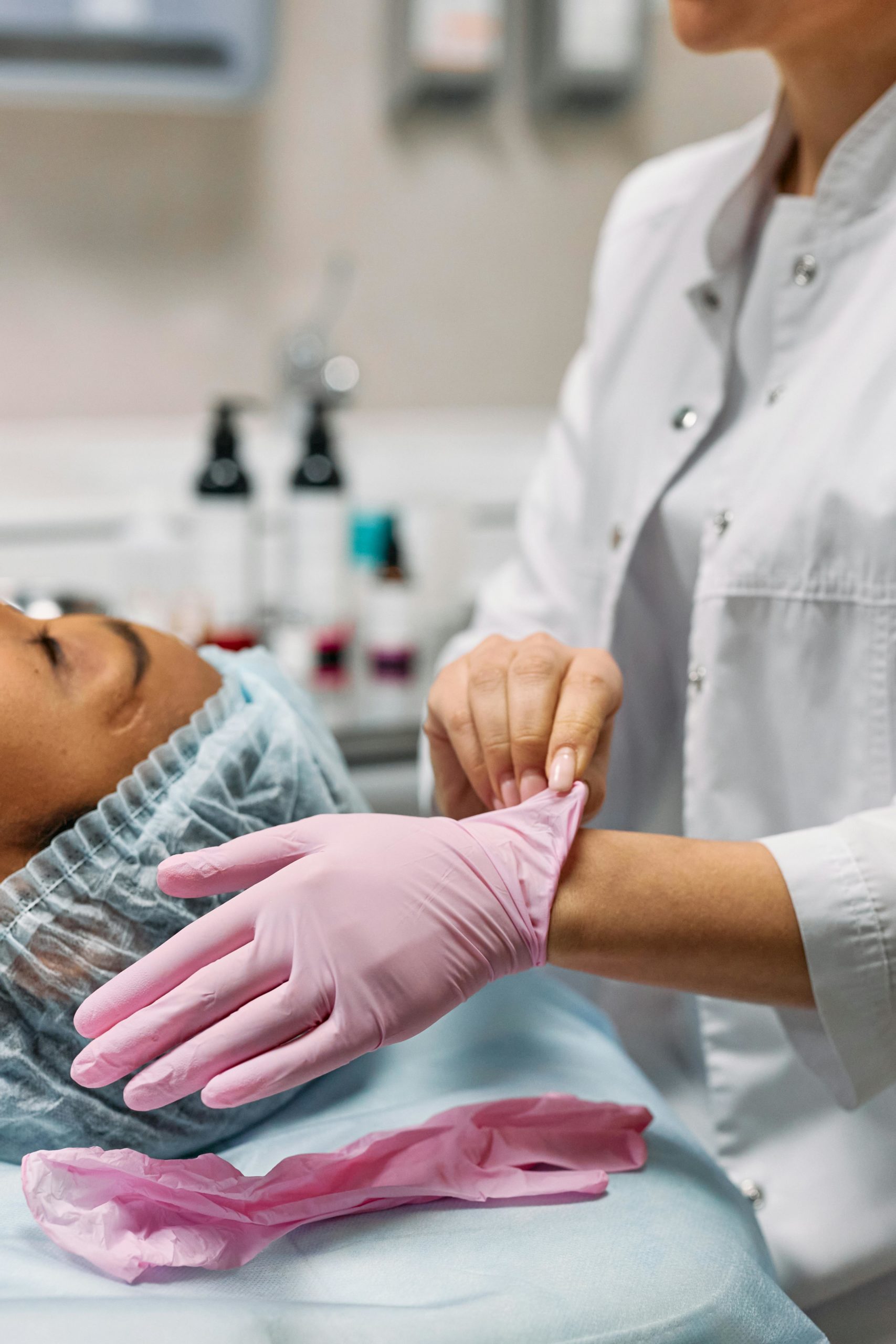 - Dokładne oczyszczenie i dezynfekcja skóry.